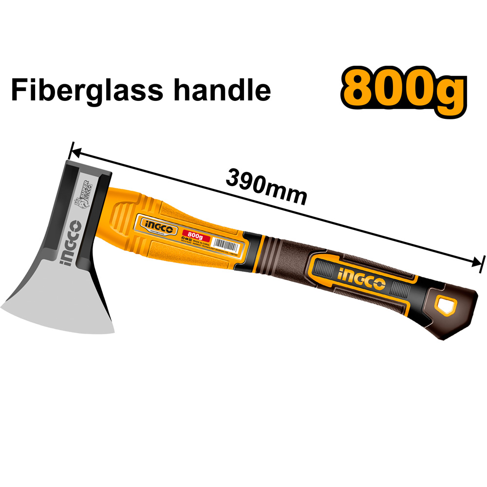 Weight: 800g Innovated drop-forged axe head Heat treatment 45# carbon steel Strong three-color fiberglass handle for comfortable grip
