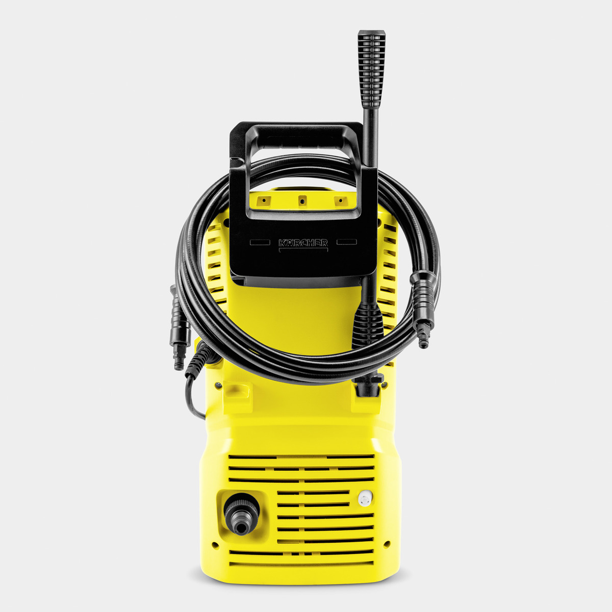 the K 1 pressure washer is ideally suited to tackling occasional, small cleaning tasks around the house. It is ideal, for example, for cleaning garden furniture, bicycles and small patios. The flat jet nozzle included cleans powerfully, even on sensitive surfaces. Just right for occasional cleaning of light contamination. A built-in water filter reliably protects the pump against dirt particles. After cleaning, the high-pressure hose and spray lance can quickly and easily be stowed away by attaching them to the device. Thanks to its small and lightweight design, the K 1 is easy to carry and can be stowed even where space is limited.