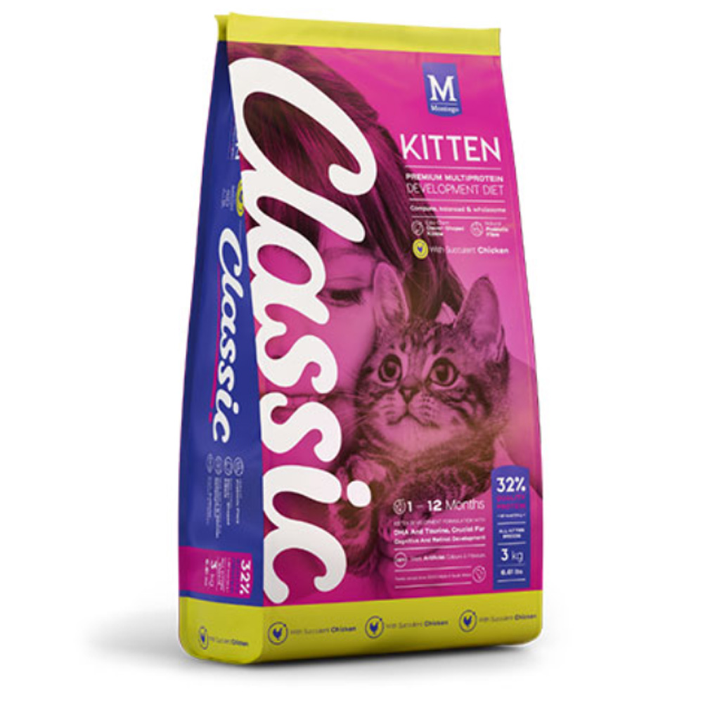 Kittens are obligate carnivores and thrive on a diet rich in protein and fat from meat to provide the necessary nutrients and energy. Classic Kitten provides kittens with 387 kcal per 100 g, 32% protein, 13% fat, amino acids and essential fatty acids so they can live life to the fullest.‎