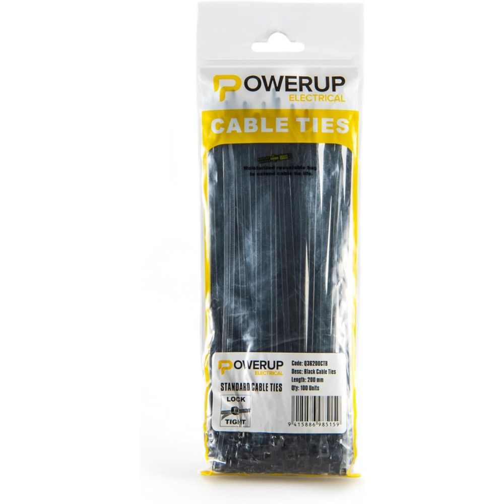 Powerup Electrical Cable Ties, 4.8 mm x 400 mm – Black PPT5210