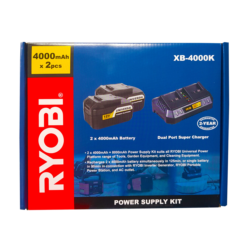 • 2x 4000mAh=8000mAh power supply kit suits all RYOBI universal power platform range of tools, Garden Equipment, and Cleaning Equipment.