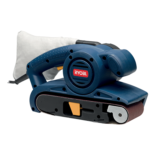 - Standard accessories include dust bag and abrasive belt