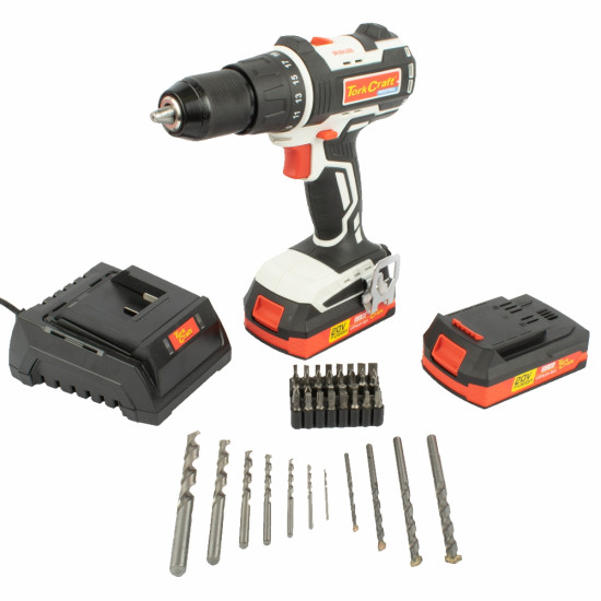 The cordless drill is designed with flexibility and durability in mind. The powerful 20V battery delivers performance where it is needed, whether it be drilling, screwdriving, or percussion drilling.